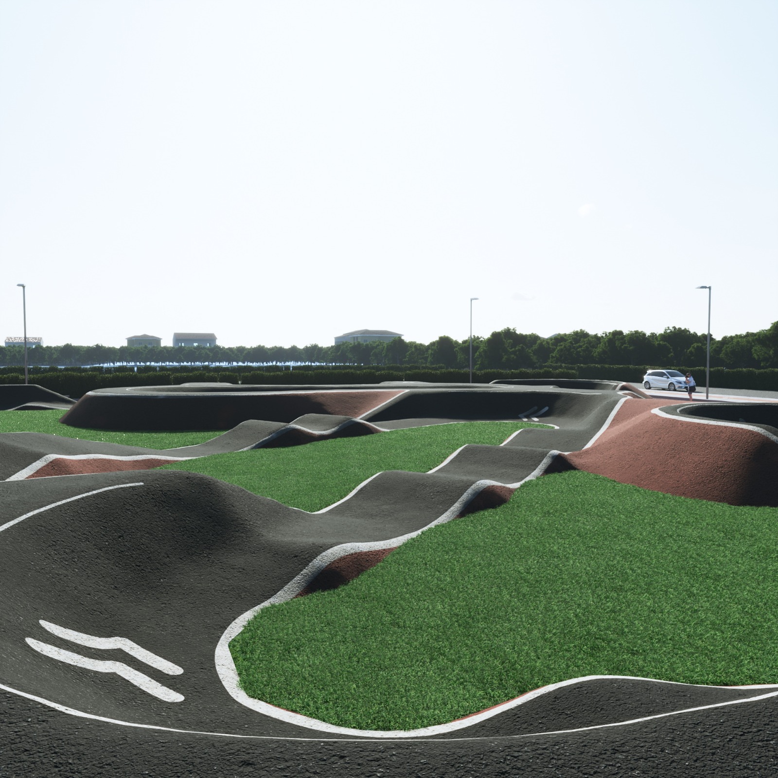 Este circuito de curvas y montículos está pensado para que patines, monopatines, skates y bicicletas puedan avanzar mediante el uso de su propio impulso, en lugar de pedalear.